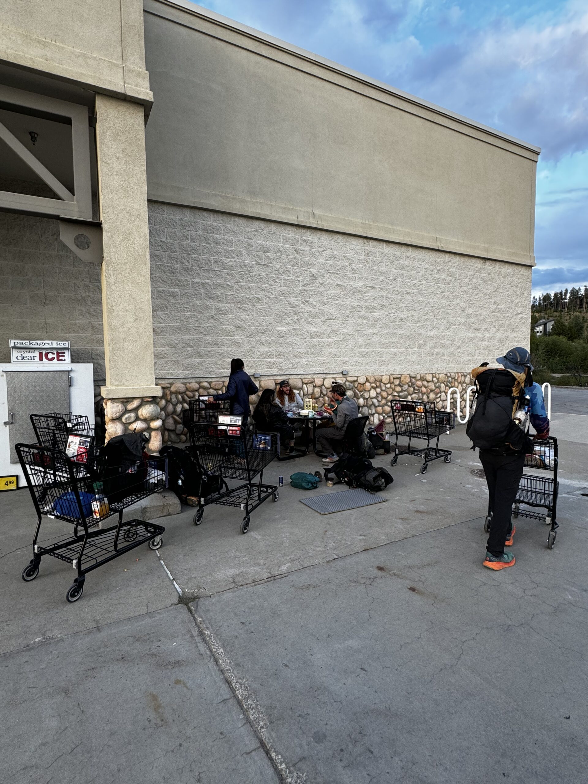 Loitering at the Safeway is mandatory in Colorado. They have tables outside so you just spread everything out, repackage your food and hit the deli section. I always go for chicken and a bunch of sides. I’d mention we’re thru hikers and ask if they could add a little extra. Usually worked.