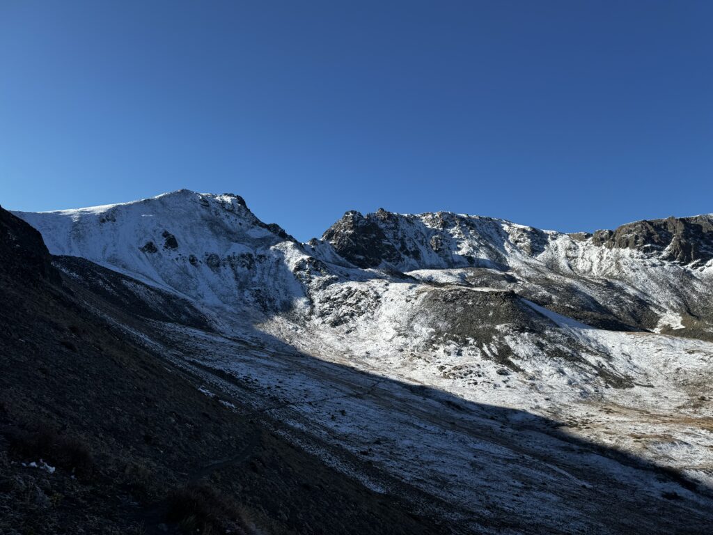We chose a route that connected four 4,000 meter peaks. Just going up and down on rocks looking for the route as a group. Pretty fun but there was a storm looming the whole time so we had to move fast. Intense experience either way because you’re basically climbing and descending 20% grade the whole time.