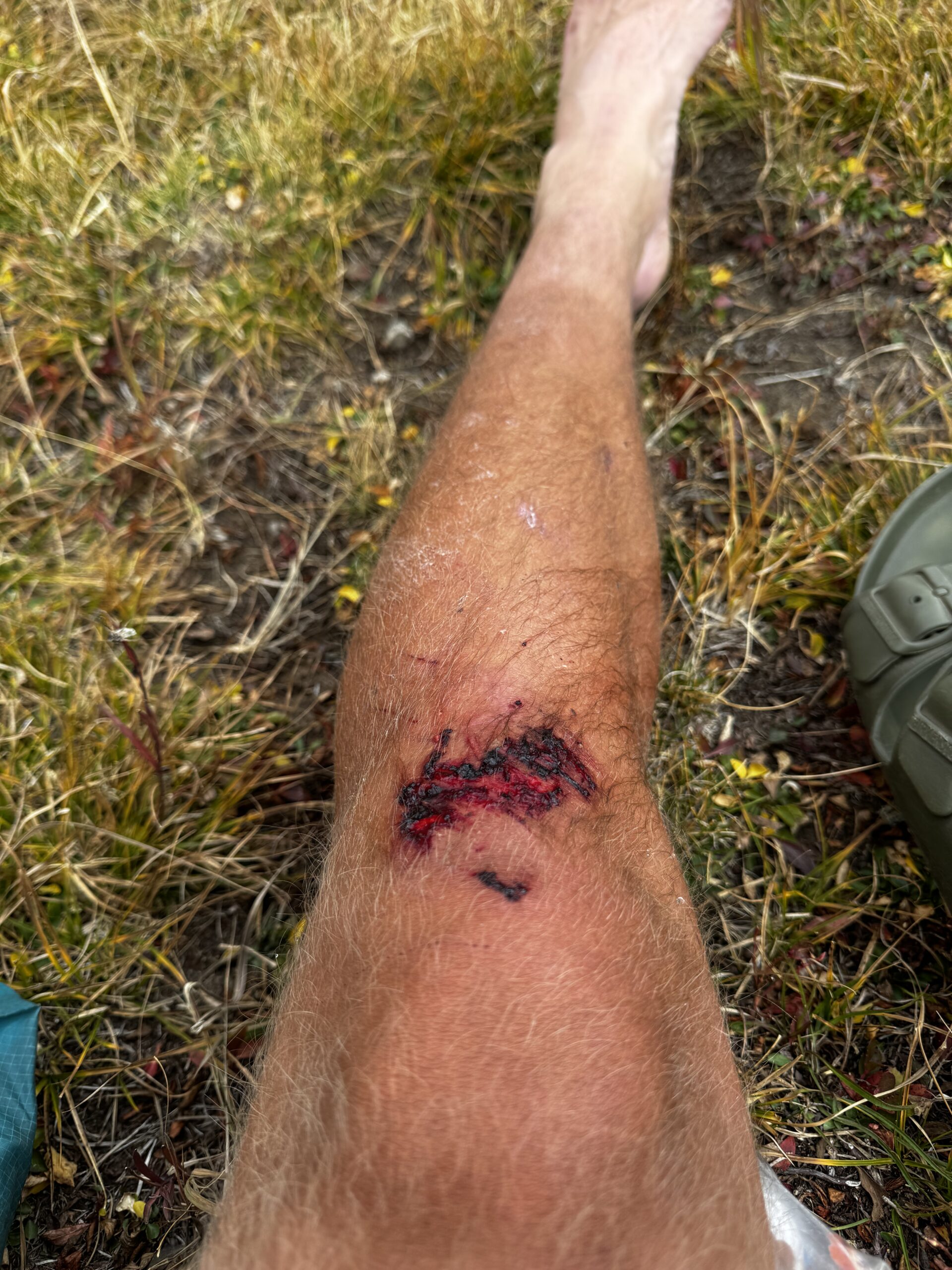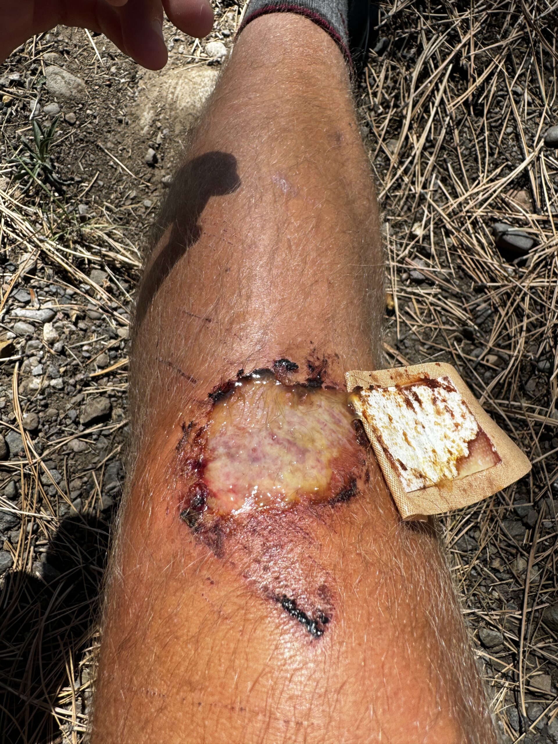 For those who love extra details, here’s how the knee looked after absolutely destroying that rock.