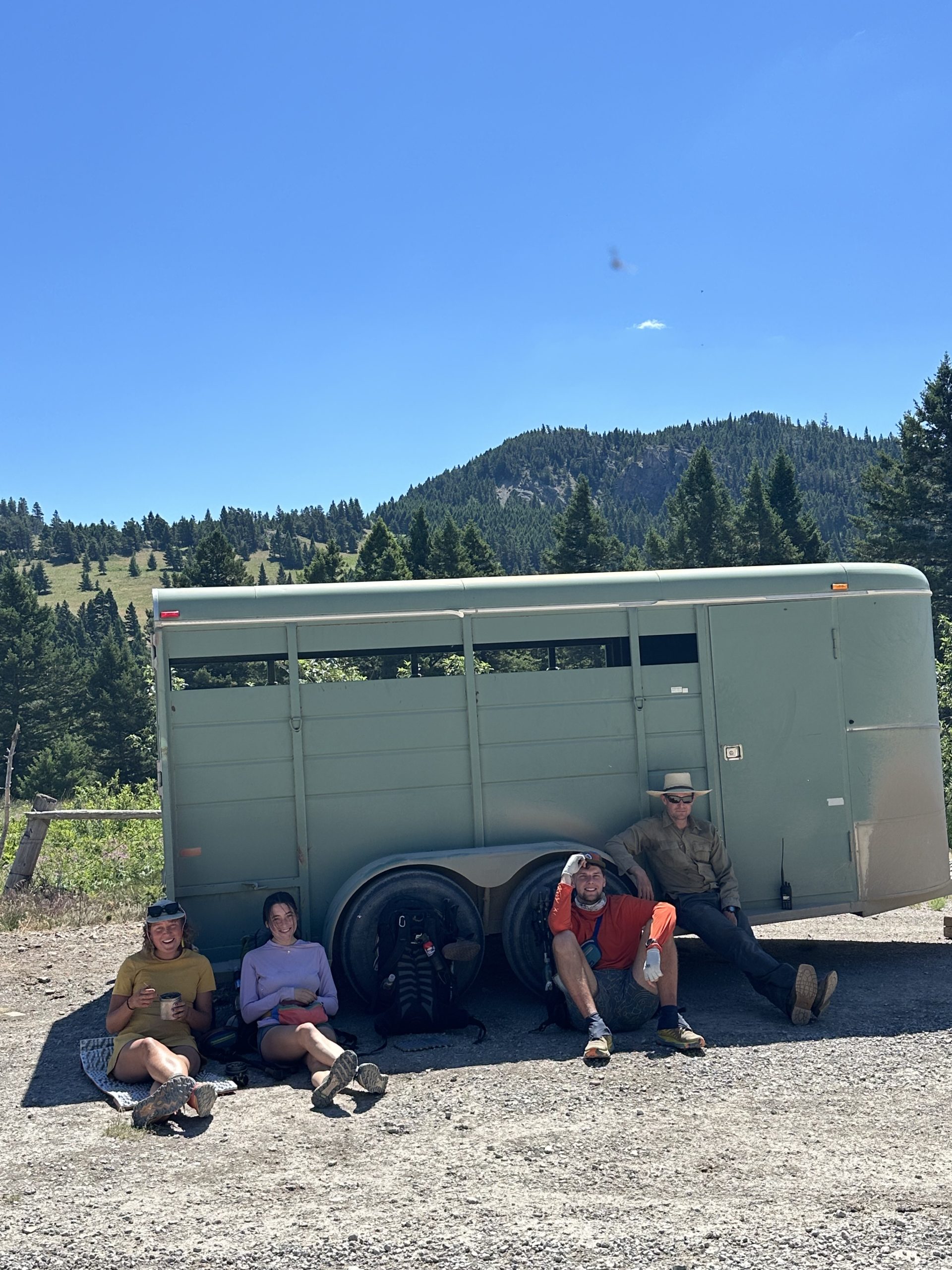 Getting back to the trail from Augusta usually means paying some guy 20 or 30 bucks to drive you down a dusty road squeezed into the back of a truck. We decided to try hitching instead and managed to pull it off in three rides. After the second one we got dropped off and spotted this ranger waiting by the side of the road. His truck had broken down. He had a trailer with a few horses inside and was just waiting for help. We sat with him for a bit. He wasn’t really chatty but we got this pretty iconic picture out of it.