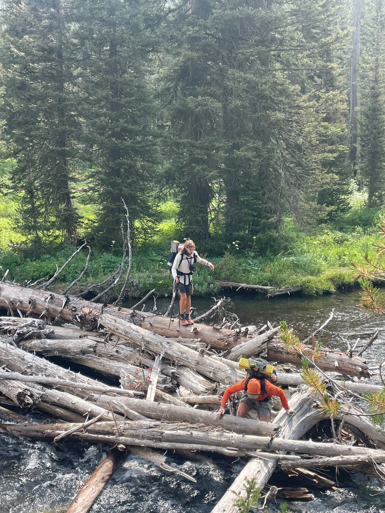 Or maybe I was too confident. Here’s my buddy G-Money-Cancun crossing this log over a river. In the video it doesn’t look that bad but it was pretty deep. You did not want to fall in. And of course I stepped on a branch that was too weak and went in. Bent my trekking pole and still have the scars today.