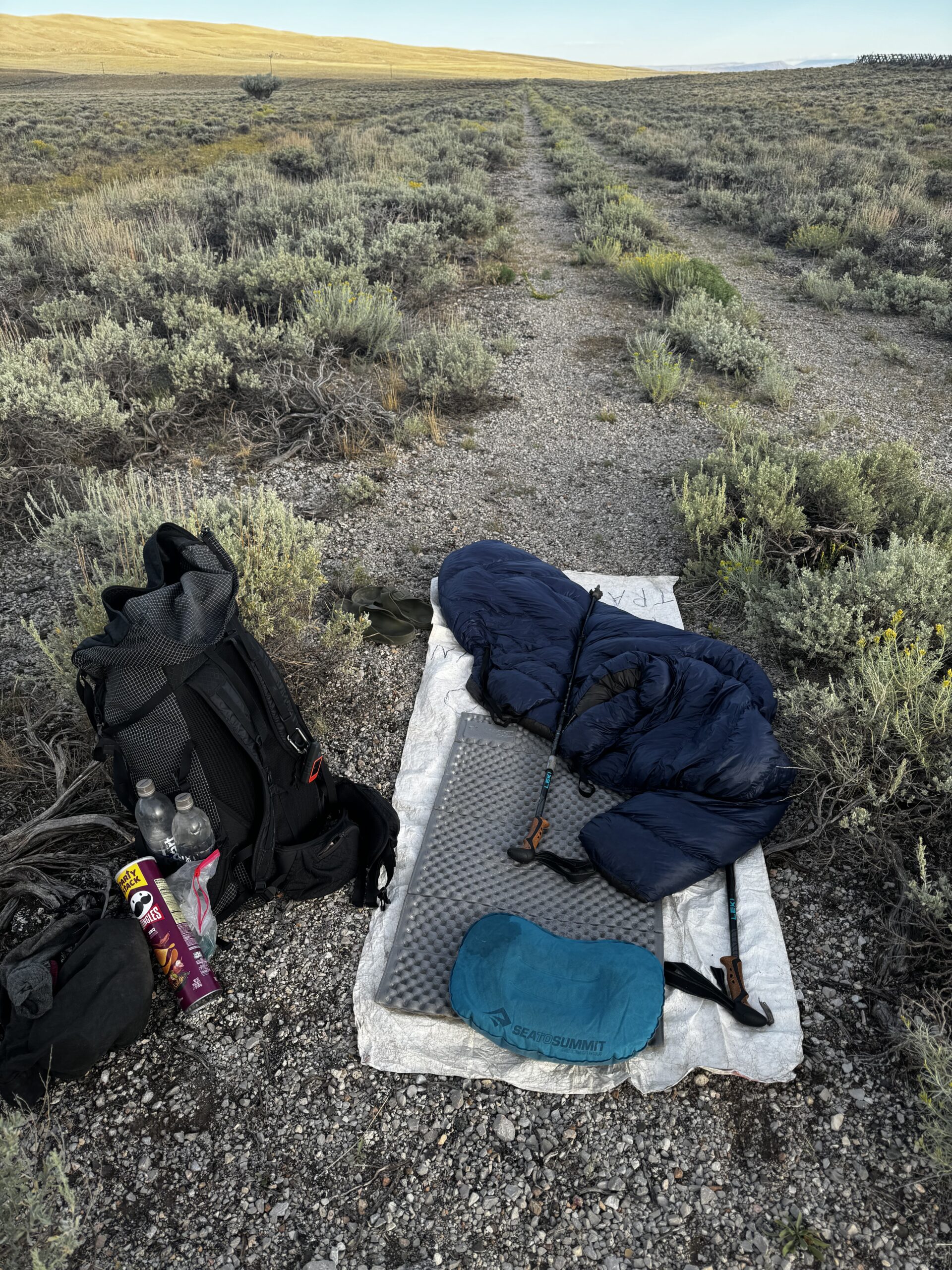 So far Wyoming had been spectacular mountain views. That was about to change. The Great Basin is a flat 200 km stretch and it just drives you nuts. Our plan was to hike a bit out of town, do a long day and finish with basically a 100 km day. That’s what we did. Take a look at the Great Basin.