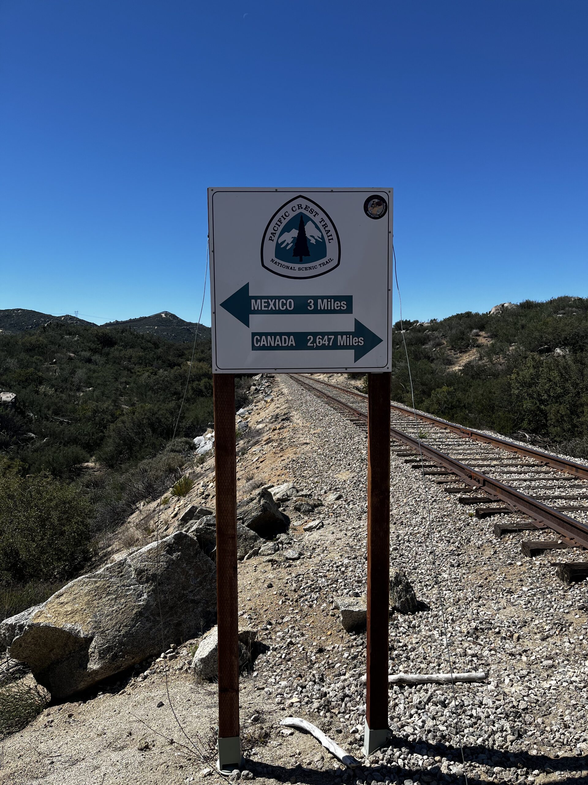I walked for the first hour, and then I saw the first sign: 3 miles from Mexico, 2,647 miles to Canada. It made things feel very real, very long — but at the same time, I remember thinking: yeah, I have time.