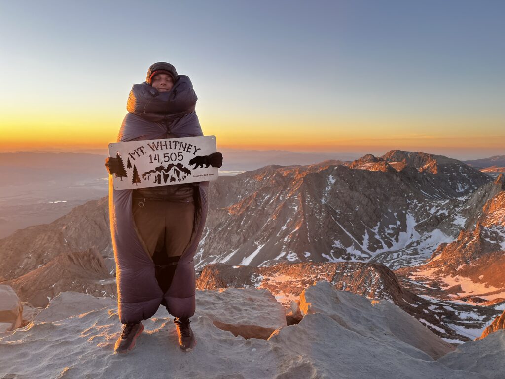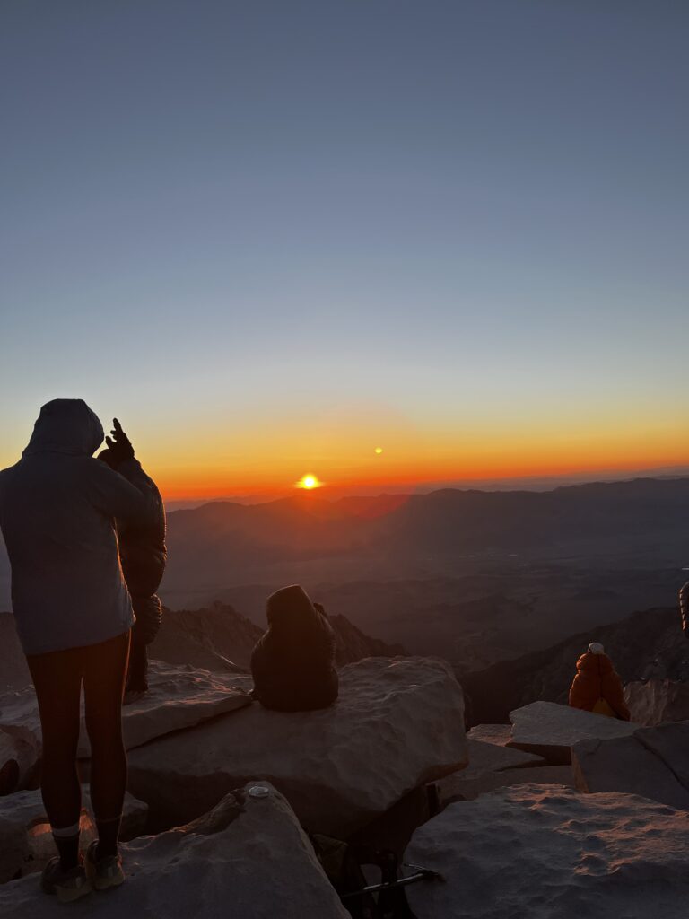So we headed out to do Mount Whitney. Honestly, it was one of the craziest experiences I’d had up to that point. I couldn’t really fall asleep because I was so excited, and I knew I’d be waking up around 12:30 at night since we had to start hiking at about 1 a.m. It was a full moon, so we hiked most of the time without headlamps, just slowly going up and up and up. I was a little bit worried about the elevation. I could feel something, and I kept thinking about it – Mount Whitney is what, around 14,500 feet, whatever that is in meters.