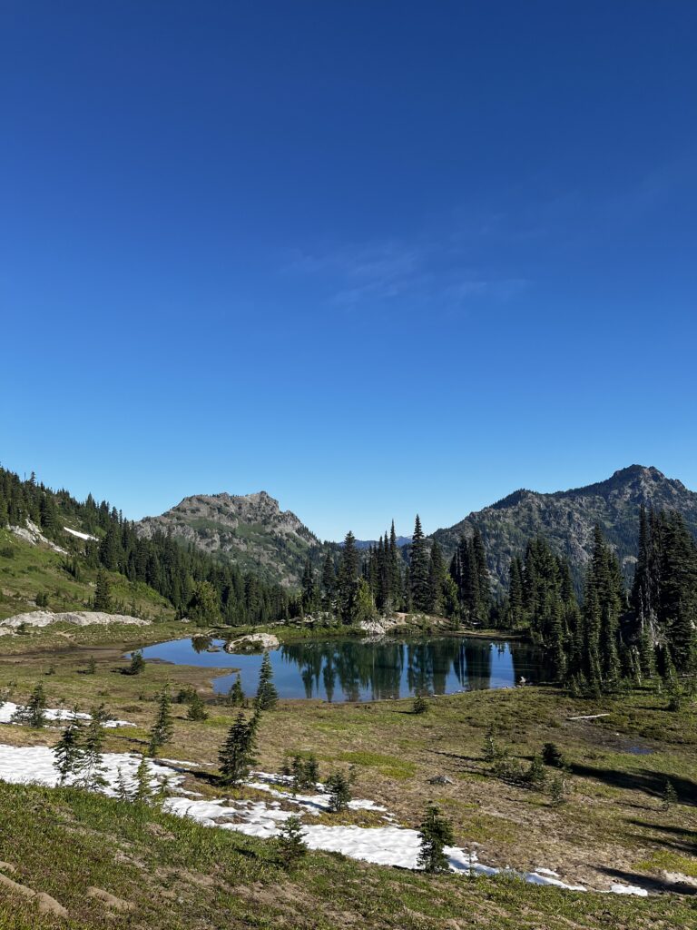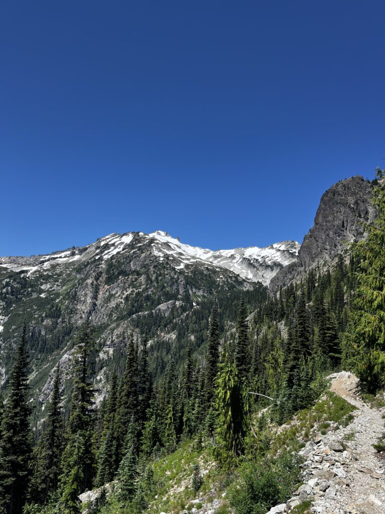 I really enjoyed the Northern Cascades and northern Washington in general. There were always mountains in the background—Mount Adams, Rainier, St. Helens… I don’t even know which was which at this point, but overall, it just felt amazing. The days were hot, there was still snow in places, but I loved that the mountains were always there, keeping the scenery interesting.